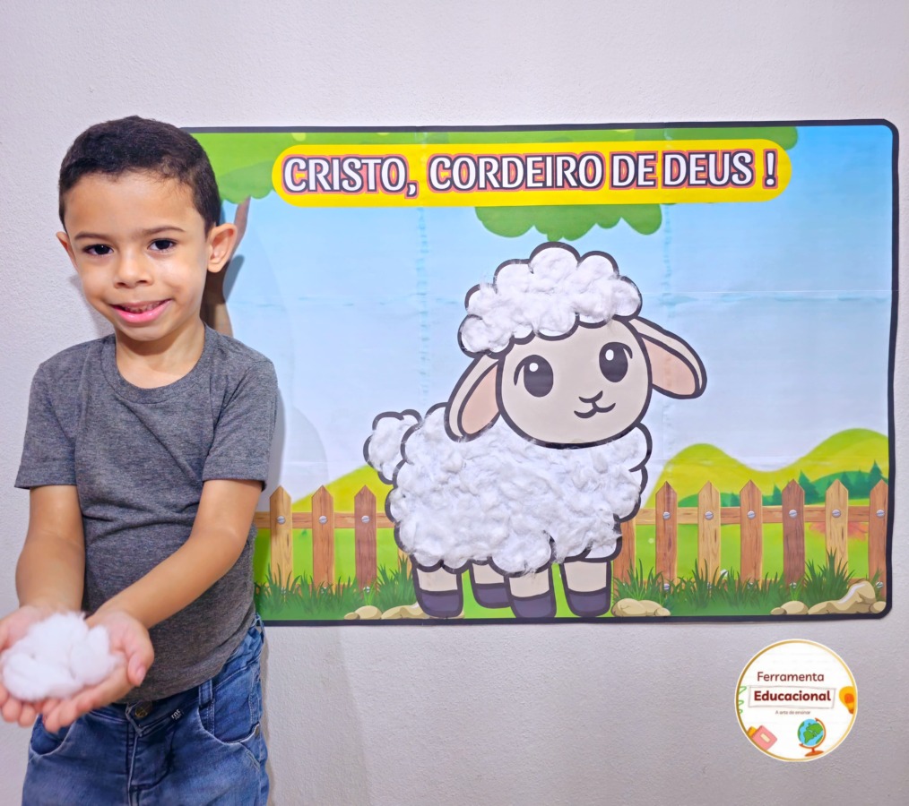 🐑 Lindo painel para trabalhar na aula de artes o verdadeiro símbolo da Páscoa entre as crianças!